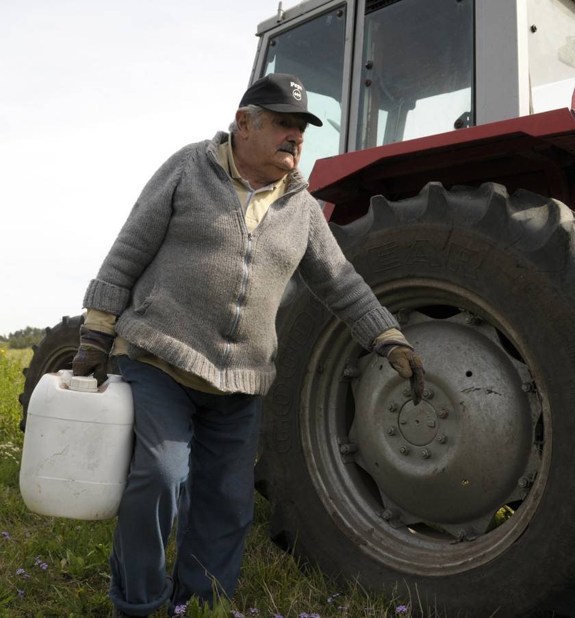 Viviendo en una pequeña granja de una habitación con su esposa, Lucia Toplansky, y un número de perros (incluida, Manuela, la perra de tres piernas), Mujica dona el 90% de su salario a caridad, predica con el ejemplo en una época de austeridad y ha ganado reconocimiento internacional por llevar adelante políticas de legislación de cannabis, matrimonio homosexual y aborto, mientras al mismo tiempo denuncia el consumo excesivo.